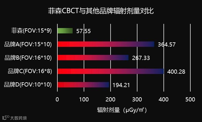 △菲森CBCT辐射剂量是国内其他品牌的1/4-1/6