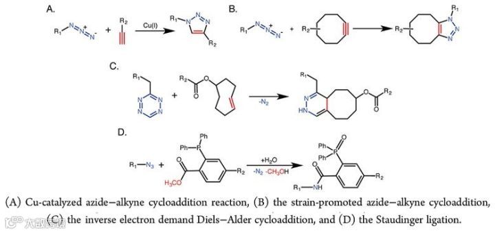 几种经典的点击化学反应。图片来源:Bioconjugate Chemistry