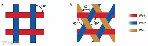 图1. 两轴编织和三轴编织示意图。图片来源:Nat. Chem.