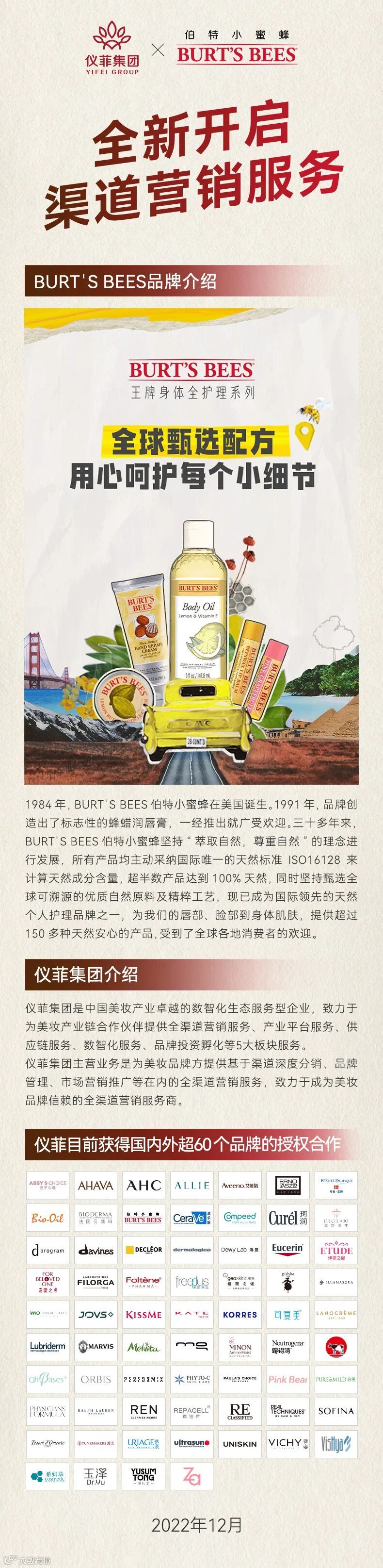 伯特小蜜蜂BURT'S BEES加入仪菲集团合作品牌大家族