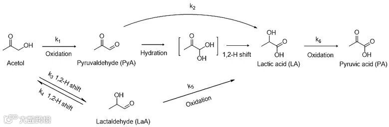图4. 羟基丙酮催化转化为乳酸的示意图
