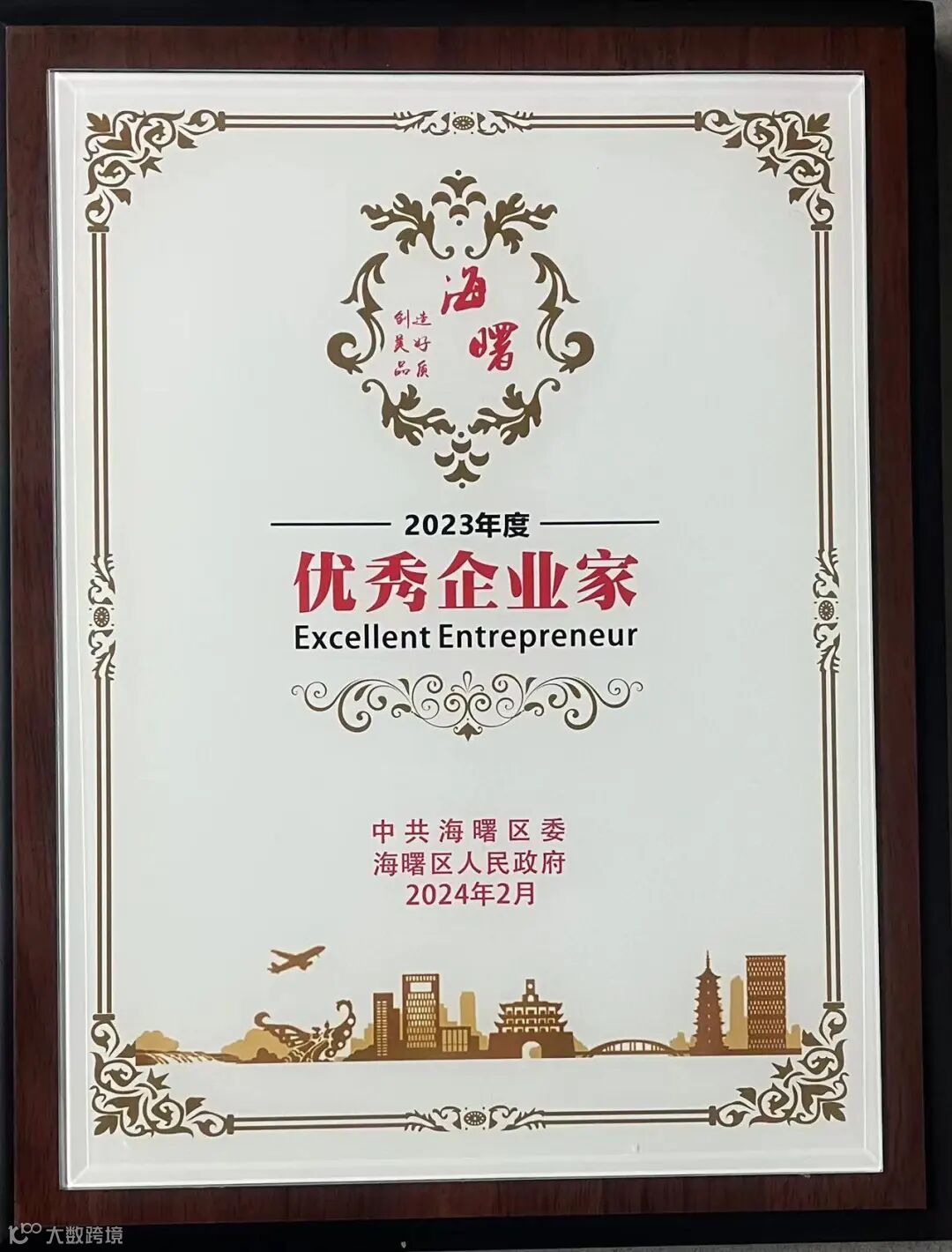 杉杉品牌运营股份有限公司董事长骆叶飞先生荣获“2023年度海曙区优秀企业家”。