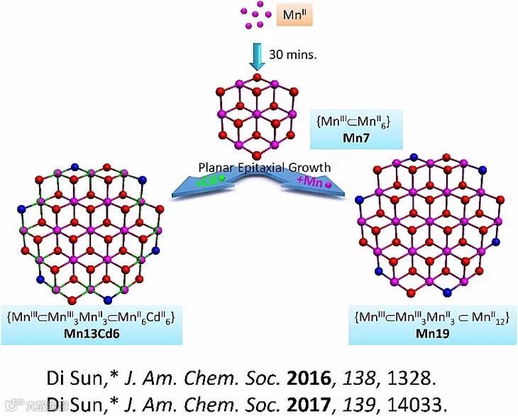 锰簇是一类非常重要的磁性材料,从著名的单分子磁体Mn12诞生至今近二十五年内,此类分子簇的合成、结构及磁性研究已经得到了飞速发展。然而,在众多的锰簇成员中,其溶液组装机理尚不明确,利用组装机理指导的合成更是非常少见,严重制约了该类分子簇的定向合成及性能调控。目前,从分子水平理解簇合物的生长及成核的细节,即如何从简单的金属离子和配体在溶液中逐步生长成为更大的分子簇是该领域研究的重大挑战。