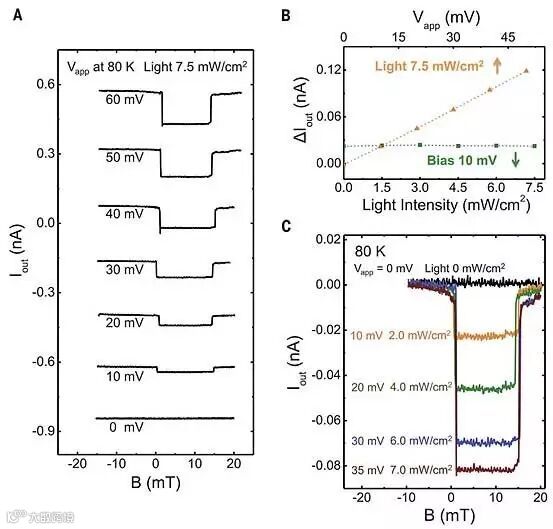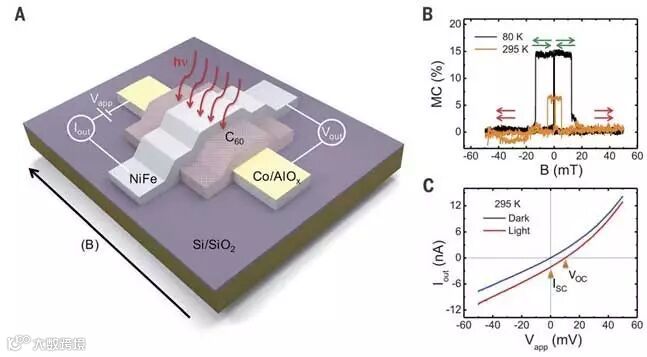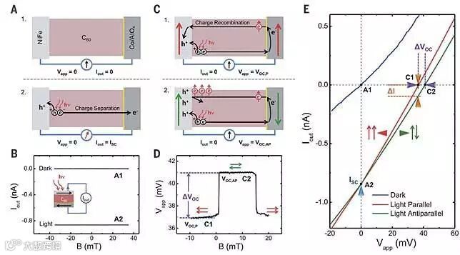 图2. 器件功能原理及其磁场下的光伏性质。图片来源:Science