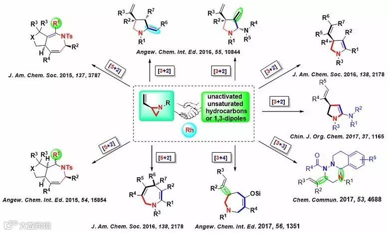 Scheme 1. 张俊良教授关于烯基氮杂环丙烷环加成反应的前期工作。