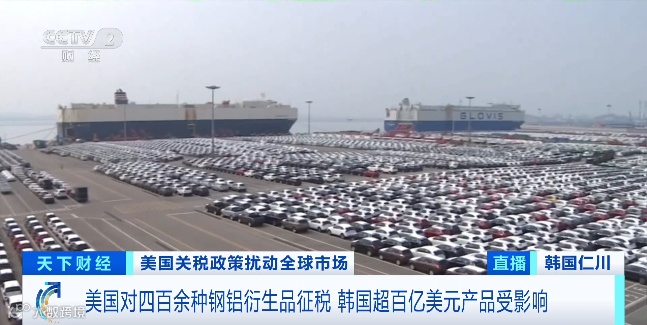 财经频道特约记者刘峥:美国此次征税的407种钢铝衍生产品,不仅涉及汽车、电子、机械等韩国对美主力出口产品,还包括带钢铁框架的家具、厨具等生活用品,甚至部分化妆品所用的铝制容器也在征税范围内。韩国贸易协会表示,这些开始被征税的品类,去年对美出口总额高达118.9亿美元。