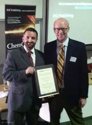 图1. Amar H. Flood教授(右)获Cram Lehn Petersen奖。图片来源:Chem. Commun.