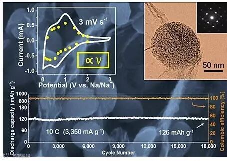 基于介孔单晶二氧化钛-石墨烯复合材料的钠离子电容器的电化学性能。图片来源:ACS Nano