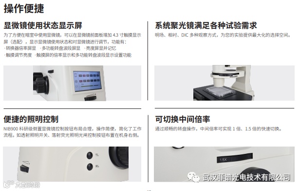 NIB900 作为一台能够满足先进生命科学研究而设计的科研级倒置显微镜,能够满足您的各种需求。它是一台全能的显微镜,它能实现明场、暗场、相衬、偏光、DIC、荧光等观察方式。甚至顶尖生命科学研究所需的共聚焦、超分辨等都可以在这台显微镜上实现。充分考虑使用者的操作习惯,采用人体工程学设计,大大减少长时间观察工作导致的机械性疲劳。NIB950 更是采用高速电动控制,将复杂的操作简单化,可视化,操作更加轻松简易。