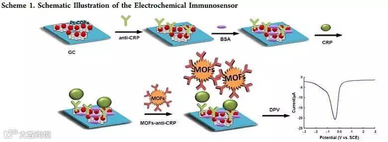 为了实现信号的放大,该工作中以含有金属离子的MOF材料作为探针,并且不需要酸溶等复杂操作,还利用最近比较火的COF材料作为基底,导电性好,在检测的过程中传感器性能良好。