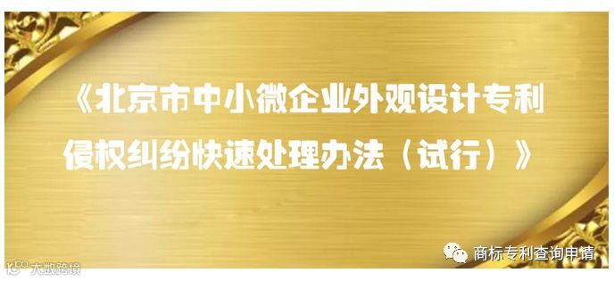 日前,北京市知识产权局印发《北京市中小微企业外观设计专利侵权纠纷快速处理办法(试行)》(以下简称《办法》)。《办法》的实施将大幅缩短符合条件的北京市中小微企业外观设计专利侵权纠纷的处理周期。