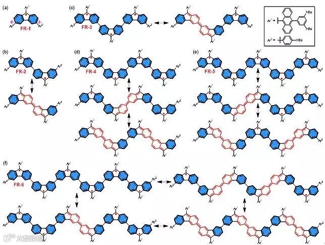 图2. 芴自由基齐聚物的结构及其共振式示意图。