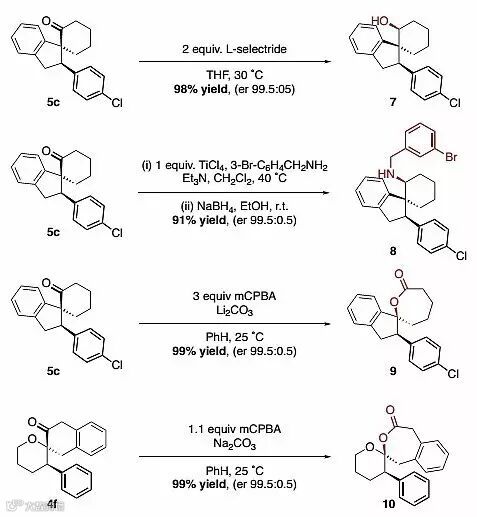 为了证明反应的实用性,作者进行了一系列衍生化实验。目标产物可通过简单的还原、还原胺化或Baeyer Villiger氧化高产率和高手性保持地得到一系列官能化的手性化合物(图5)。