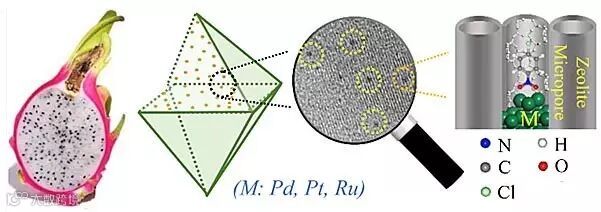 肖丰收研究团队在沸石合成过程中将Pd、Ru、Pt等金属纳米颗粒封装到沸石晶体内部,得到类似火龙果结构的金属@沸石催化材料。通过透射电子显微镜和探针分子反应等手段可以确定金属纳米颗粒被完美封装于沸石晶体内部。基于这种结构,当底物分子吸附在金属位点上,必然受到沸石微孔孔道的限域影响。研究人员通过竞争吸附和吸附取代原位红外光谱、在线拉曼光谱等手段研究了硝基苯类分子在该材料中的吸附行为,揭示了沸石孔道对含有不同取代基的硝基苯类分子的立体吸附控制机制。在一系列分子的氢化反应中,该材料均给出优异的产物选择性。