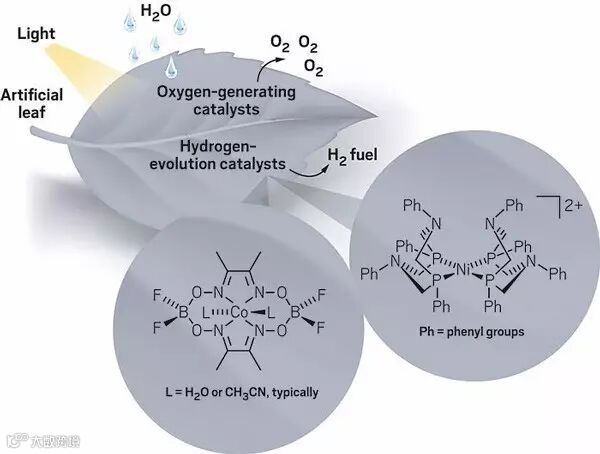 Jillian Dempsey设计的人工光合作用可以从廉价、储量丰富的原料出发,通过高效的催化转化得到储能物质氢气。图中展示了构思精巧的催化剂结构及其催化析氢反应的过程。