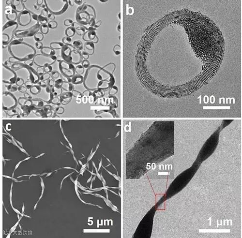 图3. 金纳米戒指与金纳米项链的电镜图