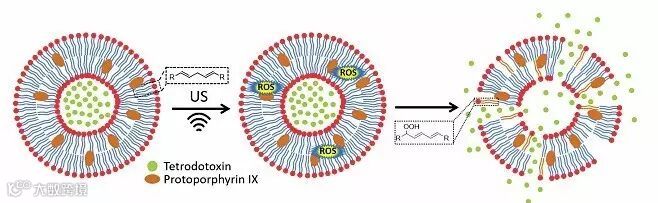 图1. 超声作用下释放麻醉药物的脂质体示意图。图片来源:Nat. Biomed. Eng.