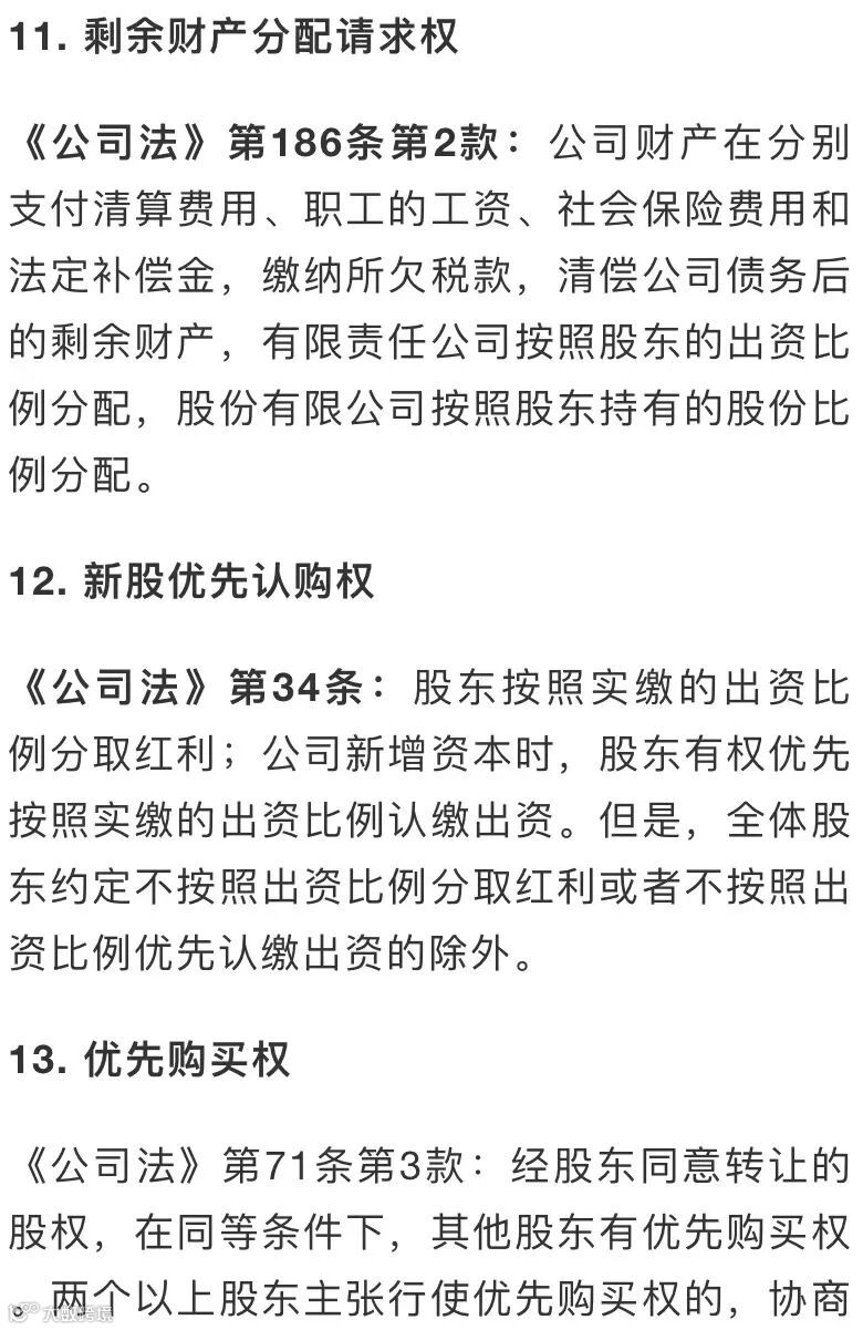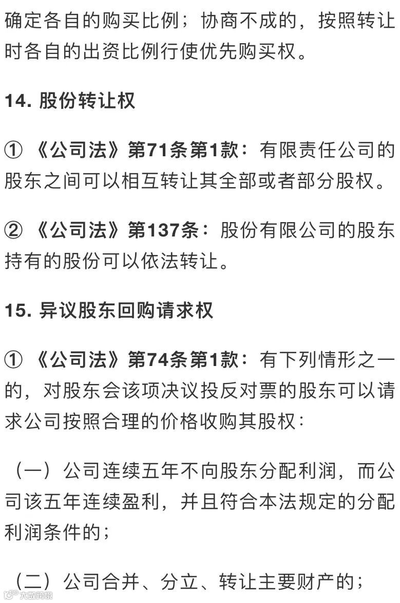 以上,共15项股东权利。