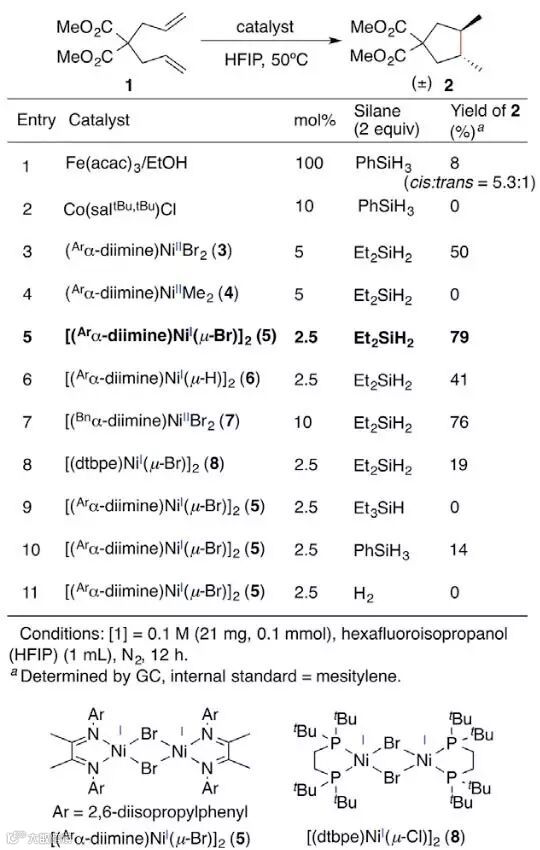 图2. Ni(I)催化1,6-二烯的还原偶联反应的催化剂筛选。图片来源:Chem
