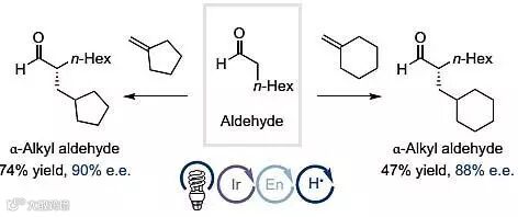 图5. 醛与非官能化烯烃间的烷基化反应。图片来源:Nat. Chem.