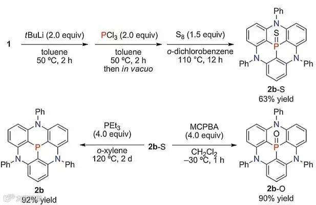 图4. 以磷为中心的三角烯2b的合成。图片来源:Angew. Chem. Int. Ed.