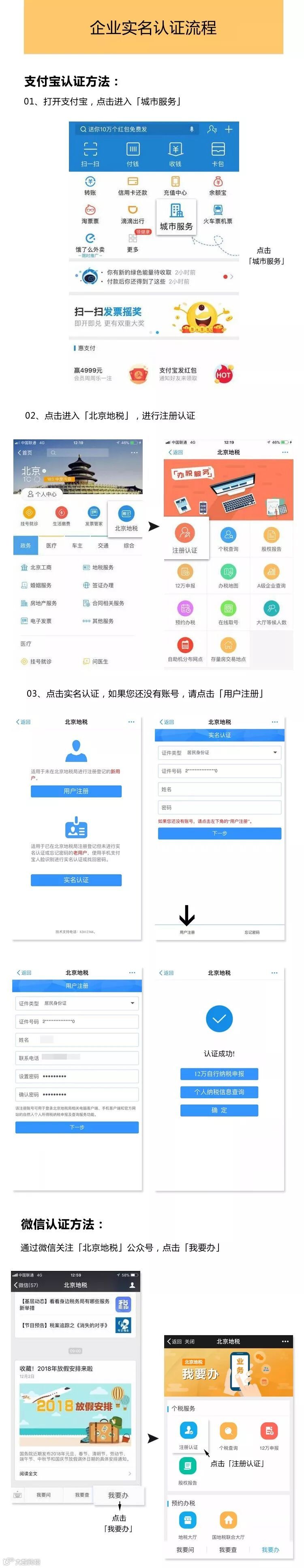 答:可以通过微信地税公众号“我要办”、支付宝城市服务下北京地税、银联钱包App中的北京地税栏目下的注册认证功能完成实名认证。完成认证后,在北京互联网地税局客户端(企业版)利用“实名办税人员维护”功能关联办税人员即可。
