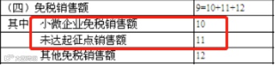 小规模纳税人按月申报销售额不超过15万元或按季申报销售额不超过45万元适用免税政策,个体工商户纳税人填写第11栏,企业纳税人应填写第10栏。