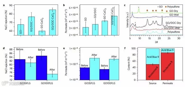 石墨烯膜分离性能与耐氯性。图片来源:Nat. Nanotech.