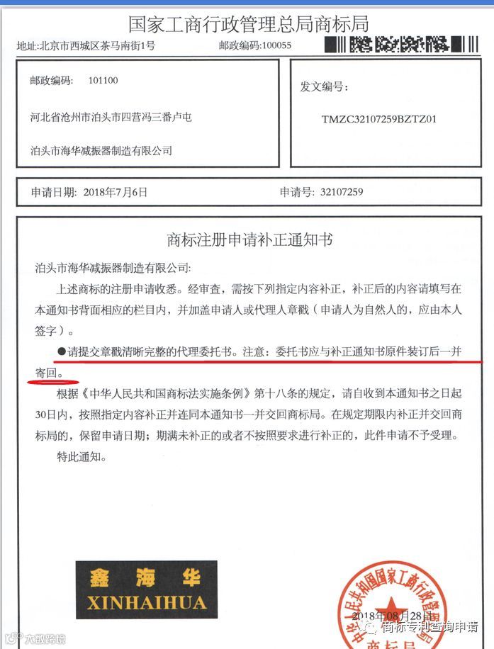 举例:注册过程中的补正事宜。