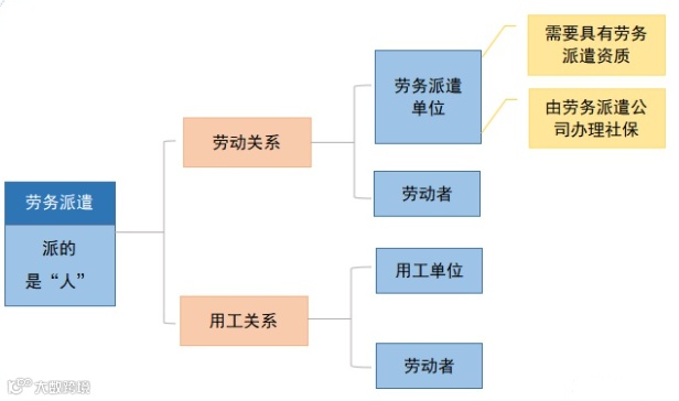 劳务派遣,派的是“人”,由人力资源公司(即劳务输出单位)与被派遣劳动者签订劳动合同;将人员派驻到用工单位,人员归用工单位管理。