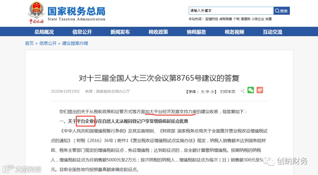 1、平台经济中的自然人能否享受月销售额10万元(季度销售额30万元)以下免征增值税的优惠,主要看是否做了税务登记。