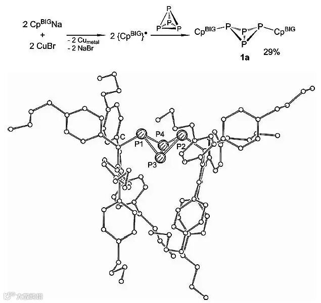 2014年,德国雷根斯堡大学(University of Regensburg)的Manfred Scheer教授报道了利用原位生成的环戊二烯自由基对P4的活化(Angew. Chem. Int. Ed., 2014, 53, 7639-7642),致使P-P单键断裂的同时构建两个C(sp3)-P键(图3,CpBIG=C5(4-nBuC6H4)5)。