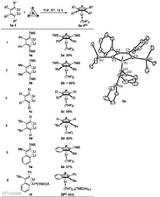 图4. 路易斯酸稳定的芳基P4负离子的合成以及1a的晶体结构。图片来源:Angew. Chem. Int. Ed.