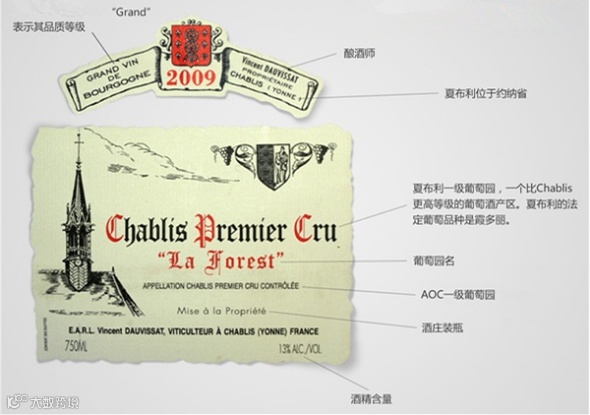 酒标通常包括几个的信息:1.葡萄酒的原产地名;2.生产商的名字;3.葡萄品种;4.商标名;5.其他。