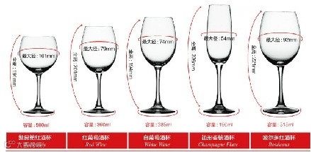 波尔多杯(右一)瓶口一般较之勃艮第杯小,香气不易消散,也可以令苦涩的酒变得柔和;