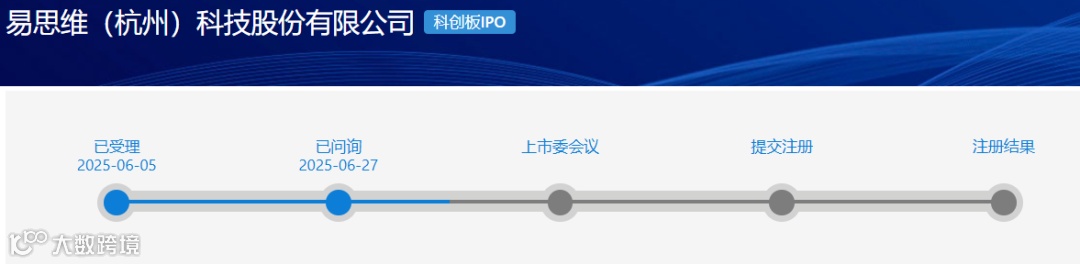 易思维上交所IPO于2025年6月5日获受理,2025年6月27日上交所下发了第一次审核问询函。
