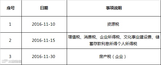11月份国地税办税日历: