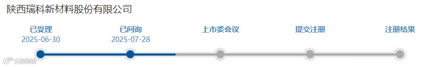 陕西瑞科北交所IPO于2025年6月30日获受理,2025年7月28日北交所下发了第一次审核问询函。