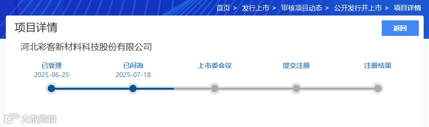 彩客科技北交所IPO于2025年6月25日获受理,2025年7月18日北交所下发了第一次审核问询函。
