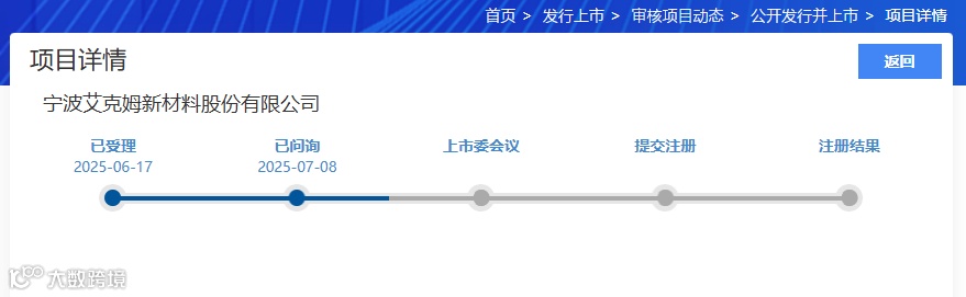 艾克姆北交所IPO于2025年6月17日获受理,2025年7月8日北交所下发了第一次审核问询函。
