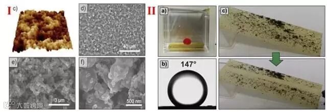 图2. MI-dPG表面的微纳二元复合结构(I)及水下疏油特性和自清洁特性(II)。图片来源:Polym. Chem.