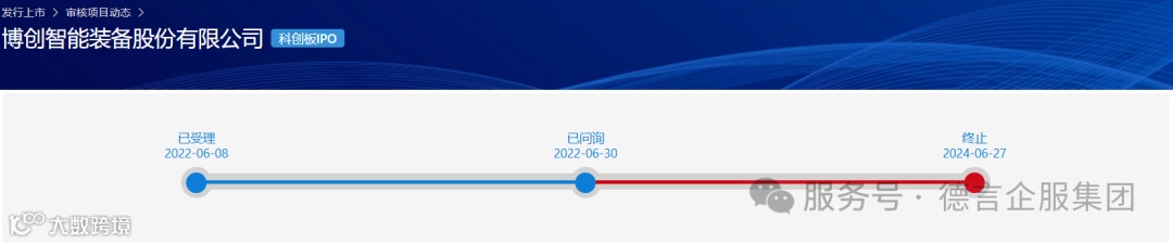 2024年6月27日,上交所公告,因博创智能装备股份有限公司(以下简称“博创智能”)撤回发行上市申请,根据相关规定,终止其首次公开发行股票并在科创板上市审核。
