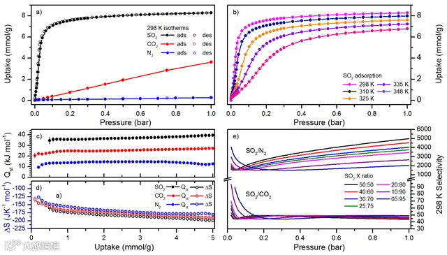 图1. MFM-300(In)的二氧化硫吸附选择性