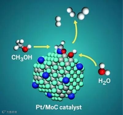 氢能是一种公认的高热值清洁能源,高位发热值达1.42×102 MJ/kg,约是汽油发热值的三倍,因此也被称为“能源货币”。然而,氢气存储和输运技术一直没有关键的突破,这也成了氢能源大规模应用的瓶颈。甲醇具有单位体积储氢量高、活化温度低、副产物少以及价廉易得等诸多优点,是理想的液体储氢平台分子。目前,采用液相甲醇水汽重整方法能够移除液体汽化单元,使反应器结构更为紧凑而利于车载。不过,高效稳定的甲醇水液相重整催化剂并不多见。最近,北京大学化学院的马丁课题组与中国科学院大学的周武、中国科学院山西煤化所/中科合成油的温晓东、以及大连理工大学的石川等课题组合作,针对水和甲醇液相制氢反应的特点,采用铂-碳化钼双功能催化剂(其中铂以原子水平分散于立方相碳化钼纳米颗粒表面),在低温下(150~190 ℃)无需强碱即可实现对水和甲醇的高效活化和催化重整。在190 °C时,催化速率高达18,046 molH2/(molPt*h),活性较传统铂基催化剂提升了两个数量级。该研究成果为甲醇水液相重整制氢与燃料电池的联用提供了可靠的催化剂选择。