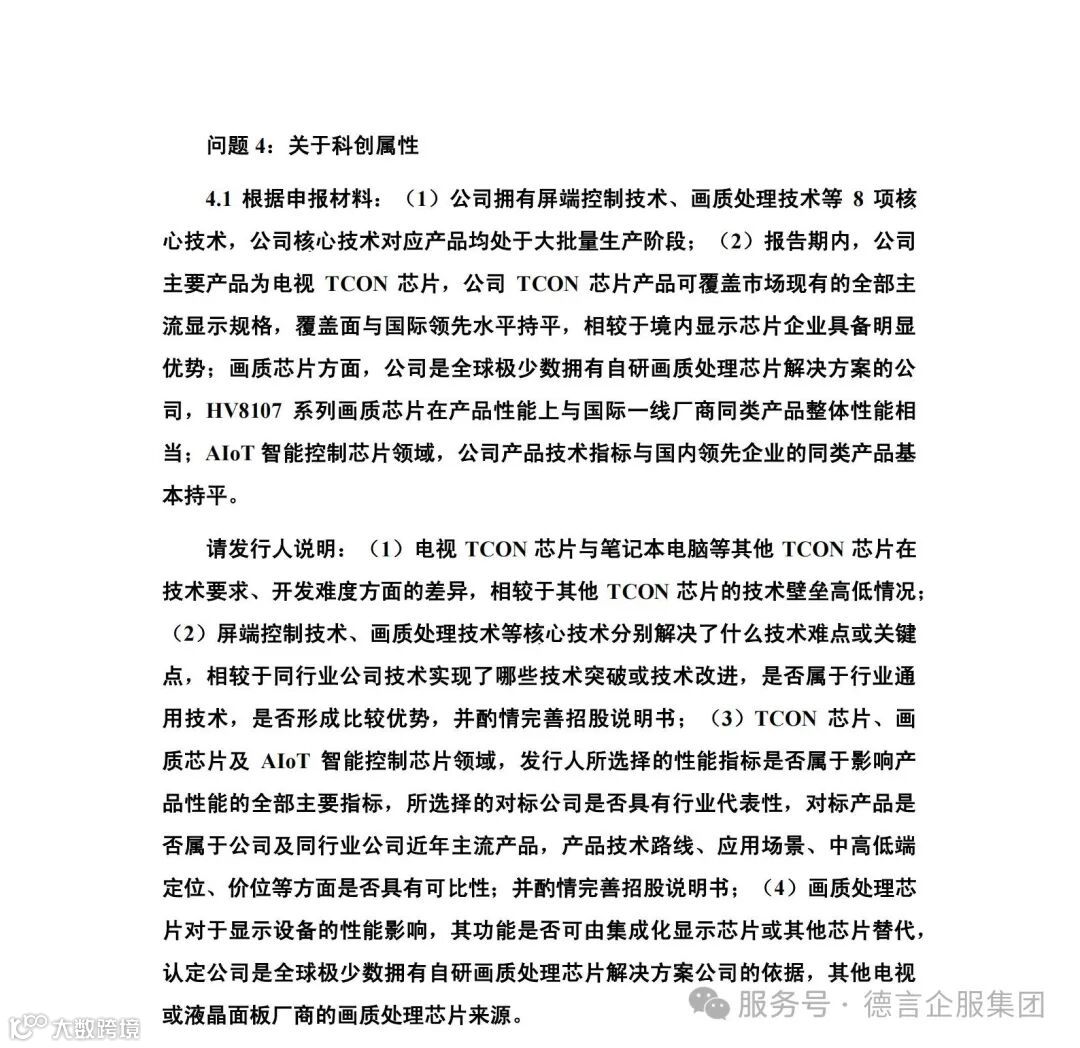 信芯微IPO进程中审核问询问题中知识产权方面的主要问询点5为【科创属性】,上市委在首轮问询中重点问询了: