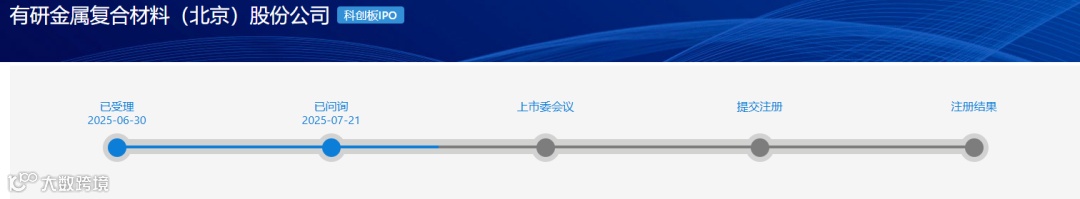 有研复材上交所IPO于2025年6月30日获受理,2025年7月21日上交所下发了第一次审核问询函。