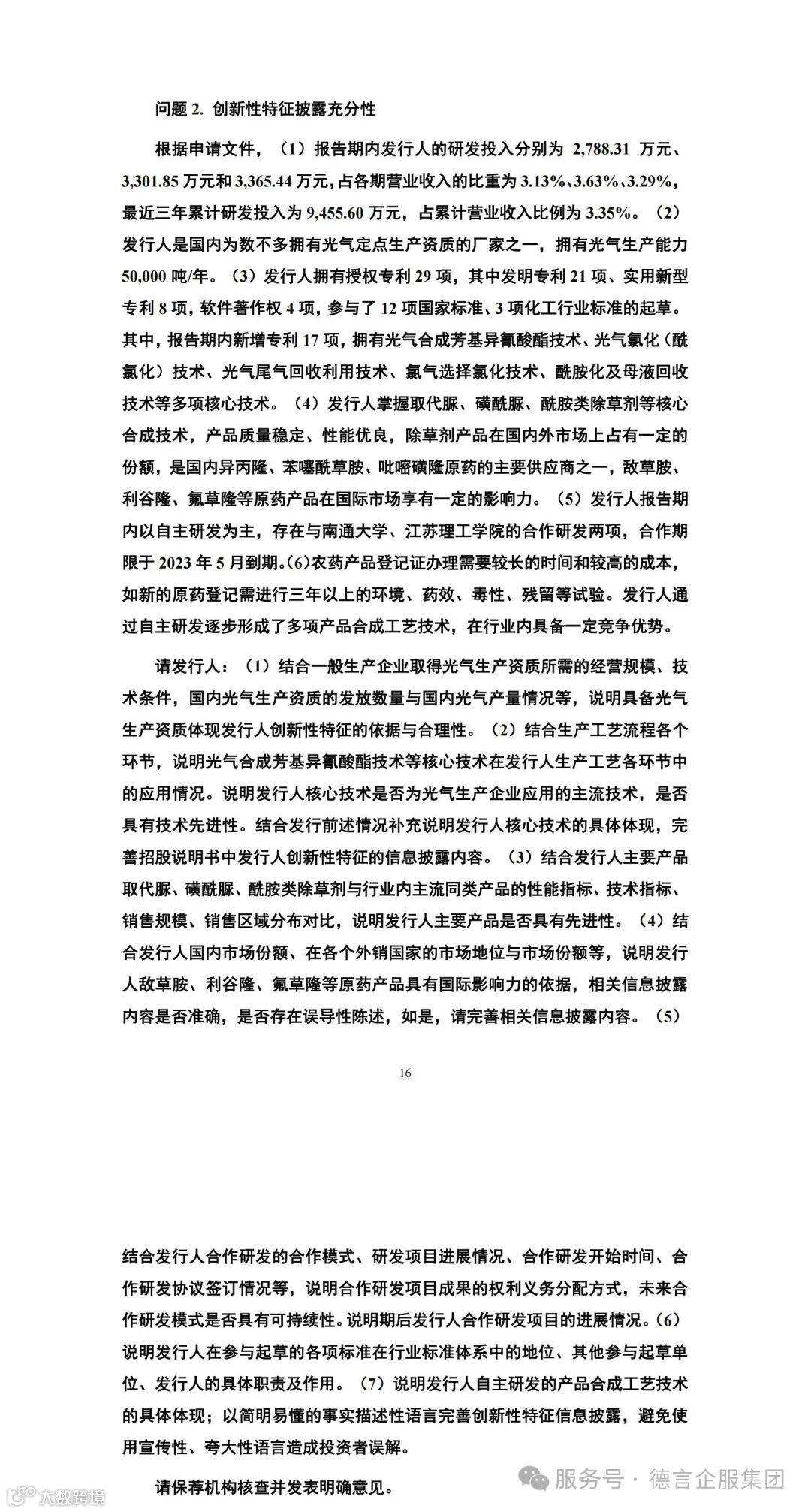 本次快达农化IPO进程中审核问询问题中知识产权方面的主要问询点为2【创新性特征披露充分性】,上市委在首轮问询中重点问询了: