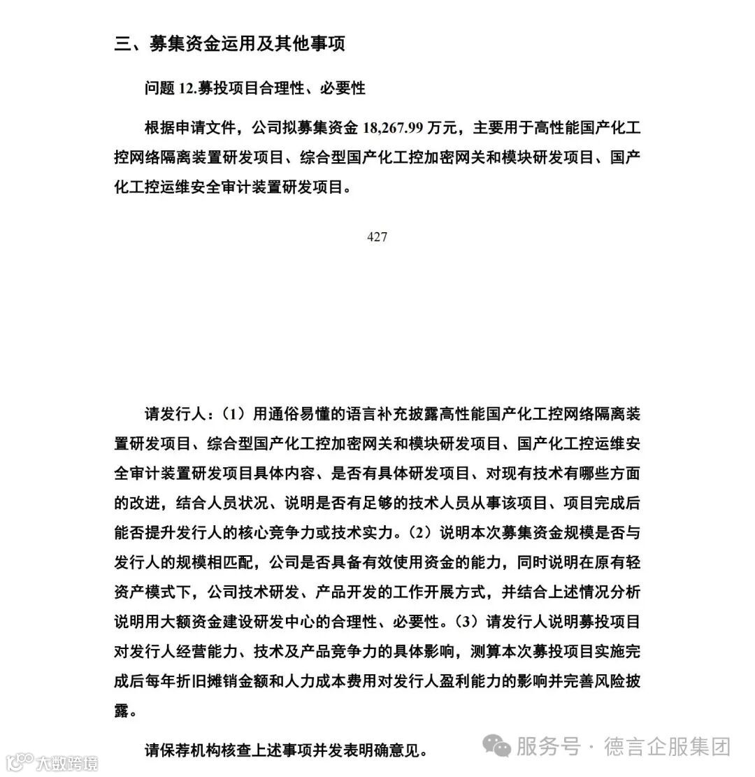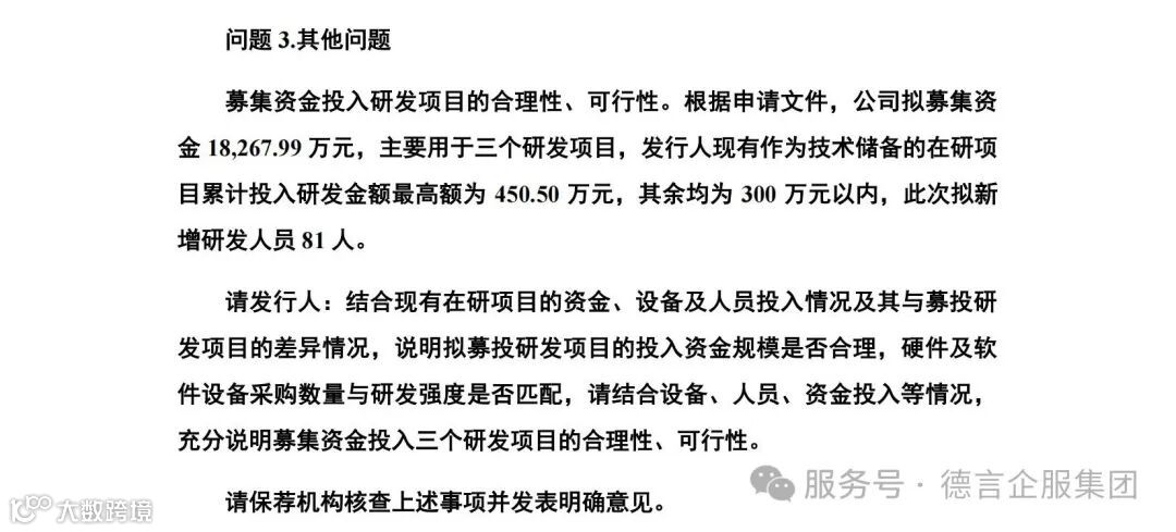 珠海鸿瑞IPO进程中审核问询问题中知识产权方面的主要问询点为3【募集资金投入研发项目的合理性、可行性】,上市委在首轮问询中重点问询了: