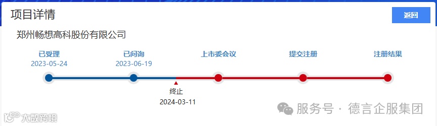 2024年3月15日,北交所公告,因郑州畅想高科股份有限公司(以下简称“畅想高科”)撤回发行上市申请,根据相关规定,终止其首次公开发行股票并在北交所上市审核。
