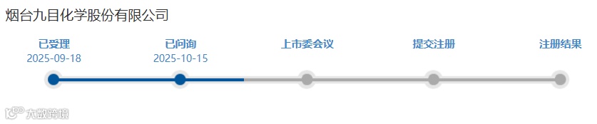 九目化学北交所IPO于2025年9月18日获受理,2025年10月15日北交所下发了第一次审核问询函。